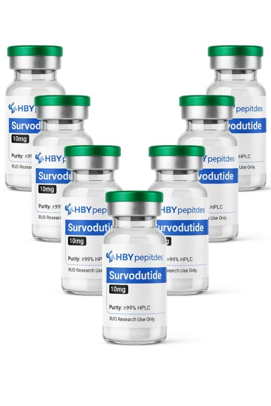 Survodutide (CAS: 2805997-46-8) is a long-acting synthetic peptide under research development, designed as a dual agonist targeting the GLP-1 (glucagon-like peptide-1) receptor and glucagon receptor pathways. It is being studied for its metabolic regulatory properties in preclinical and clinical research settings.